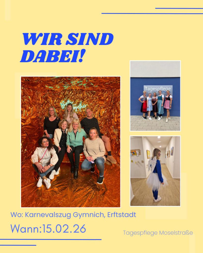 Das Team der Tagespflege nimmt als Fußgruppe am Karnevalszug Gymnich teil.